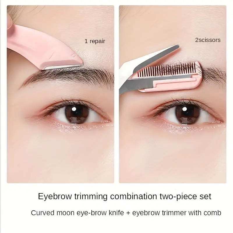 مقصات تشذيب الحاجب الوردي 2 قطعة مقص تشذيب الحاجب الفاخر، مجموعة مقصات تشذيب الحاجب المنحنية مع مشط سهلة الاستخدام في أي مكان للمبتدئين