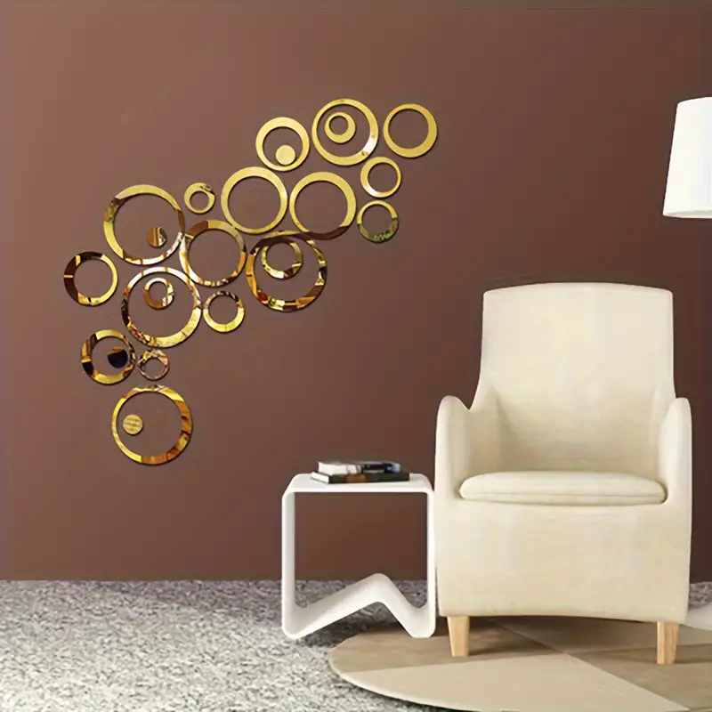 ملصقات حائط دائرية مرآة ثلاثية الأبعاد من الأكريليك بـ 24 قطعة، تزيين فني للمنزل في غرفة المعيشة وغرفة النوم وخلفية التلفاز – ملصقات مرآة دائرية