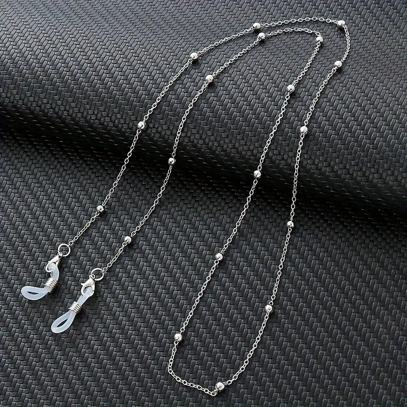 1 سلسلة نظارات معدنية نحيفة وبسيطة مع خرز معدني، سلسلة نظارات يومية رخيصة للنساء، سلسلة نظارات قراءة مضادة للانزلاق