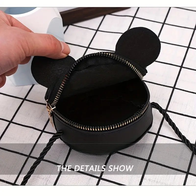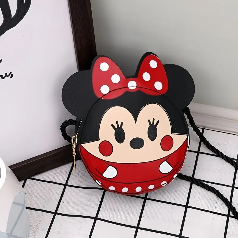 1 قطعة حقيبة كتف كرتونية ميني ماوس – حقيبة كتف PU لطيفة مع فيونكة بنقاط البولكا، للعيد