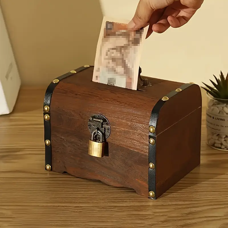 1 قطعة صندوق خشبي نمط قديم مع قفل ومقبض، صندوق نقود ديكوري ريترو