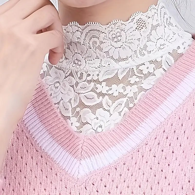 1 قطعة ياقة أنيقة من الدانتيل النايلون للنساء، قماش محبوك قابل للتمدد، حواف دانتيل مزخرفة، ياقة قميص