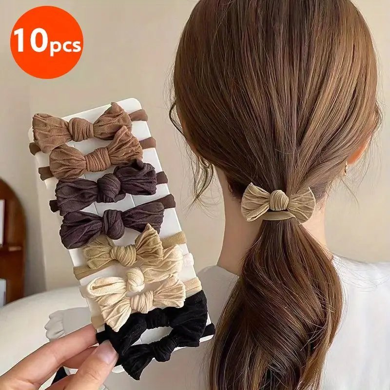 10 قطع من ربطات الشعر على شكل فيونكة للفتيات – ناعمة، مطاطية ومريحة بألوان متنوعة – مثالية للموضة اليومية