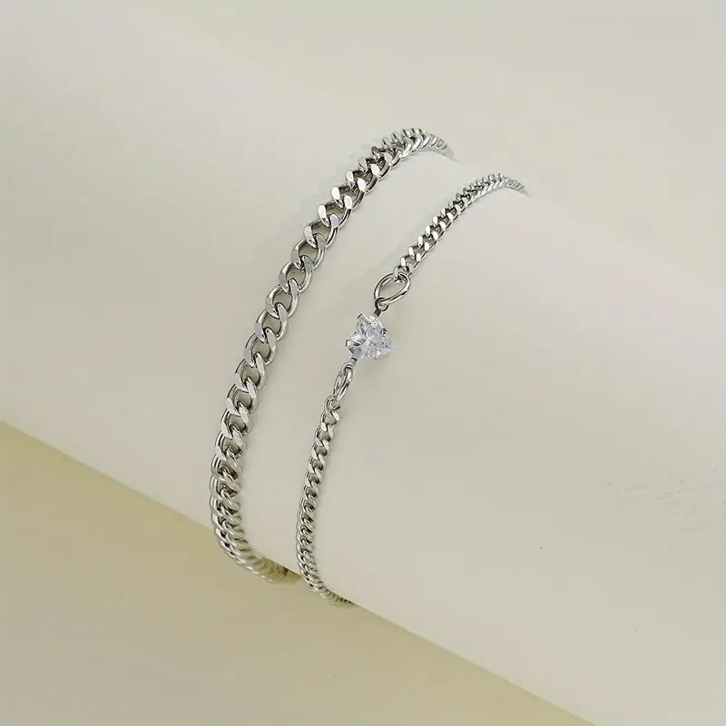 2 قطعة من الفولاذ المقاوم للصدأ زوجين مجموعة ، أنيقة وبريق نمط ، مزينة بحجر الراين ، للرجال والنساء