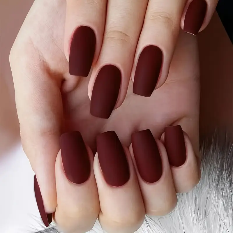 24 قطعة من أطراف أظافر أكريليك قصيرة باللون الأحمر غير اللامع للنساء والفتيات، أظافر صناعية عالية الجودة