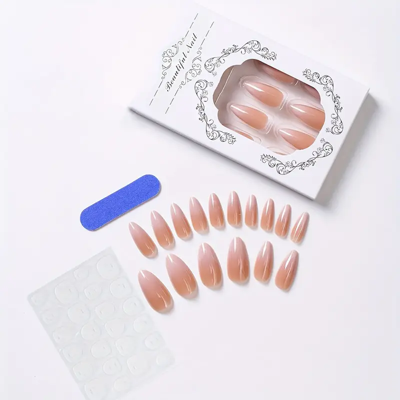 24 قطعة من الأظافر الطويلة على شكل لوز بتدرج اللون البيج الناعم، مثالية لفصلي الخريف والشتاء. تتضمن 1 ورقة من صمغ الجيلي و1 مبرد أظافر أزرق. مناسبة لكل من اليدين والقدمين.