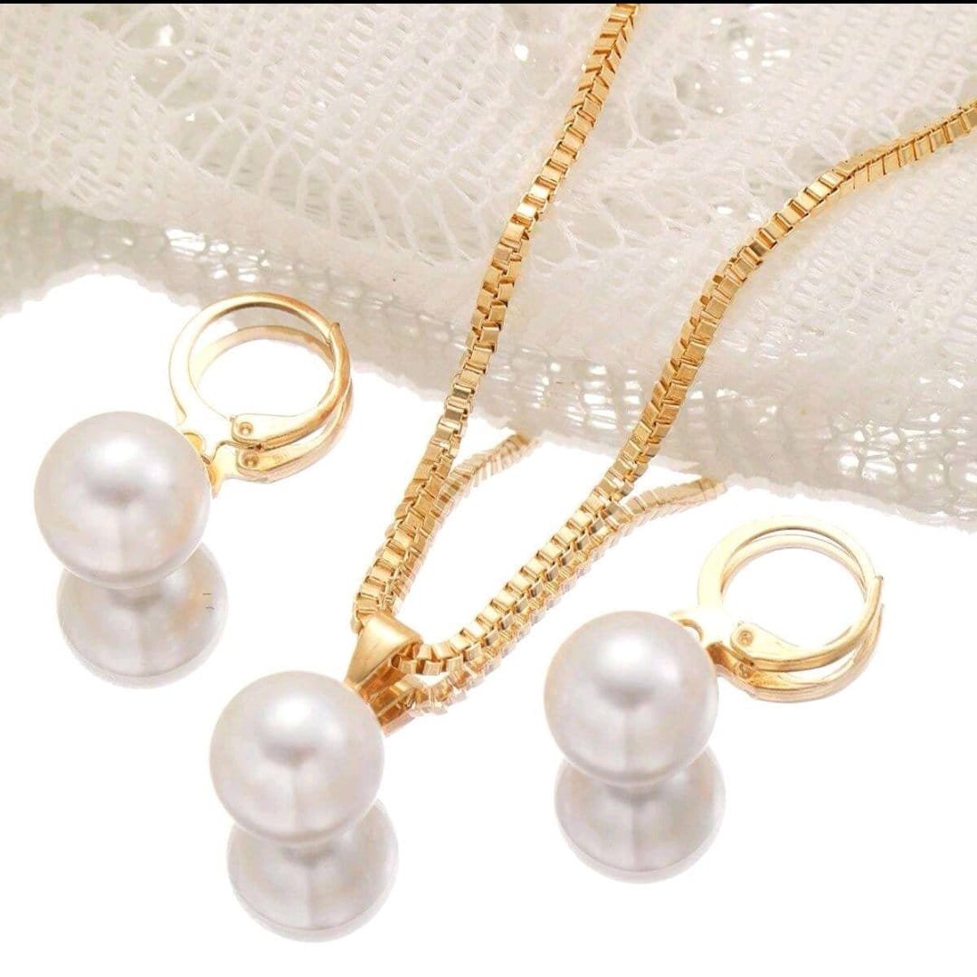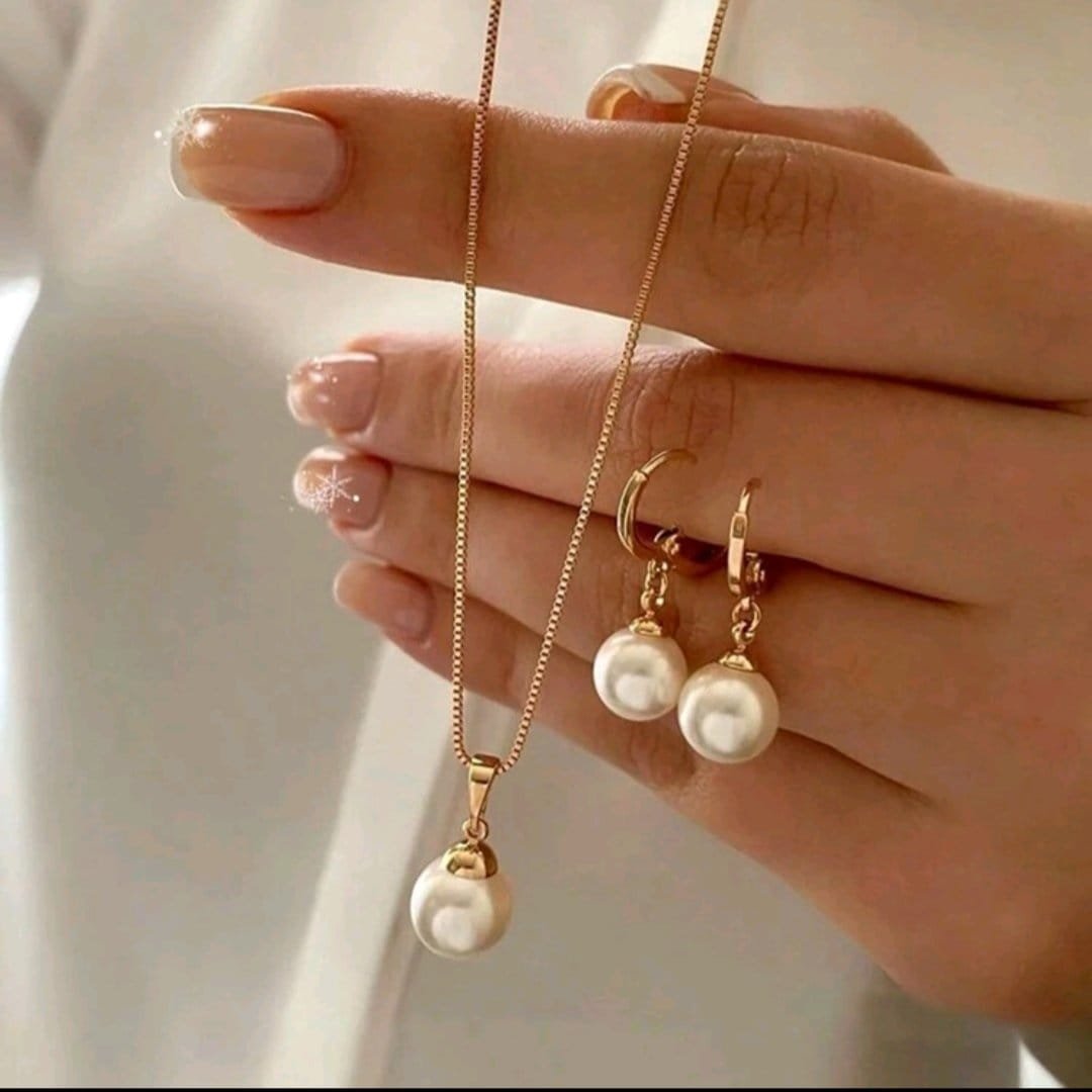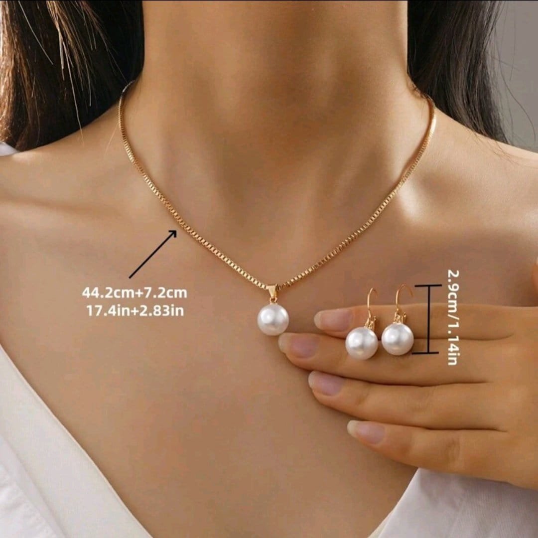 3 قطع مجموعة من طقم مجوهرات قلادة وأقراط من اللؤلؤ الصناعي هدية للنساء