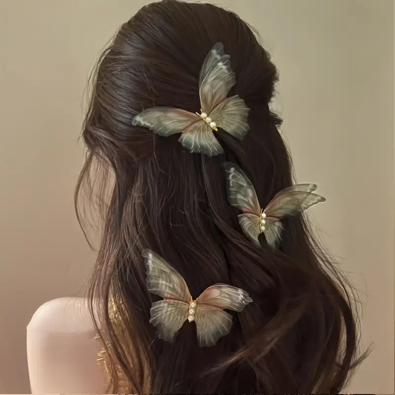 3 قطع مشابك شعر أنيقة على شكل فراشة من اللؤلؤ الصناعي مشابك شعر عتيقة للنساء وللارتداء اليومي