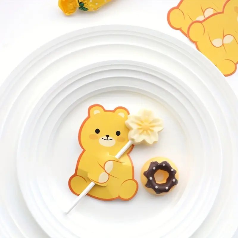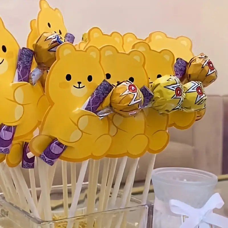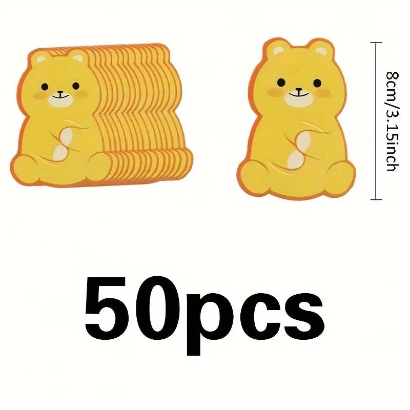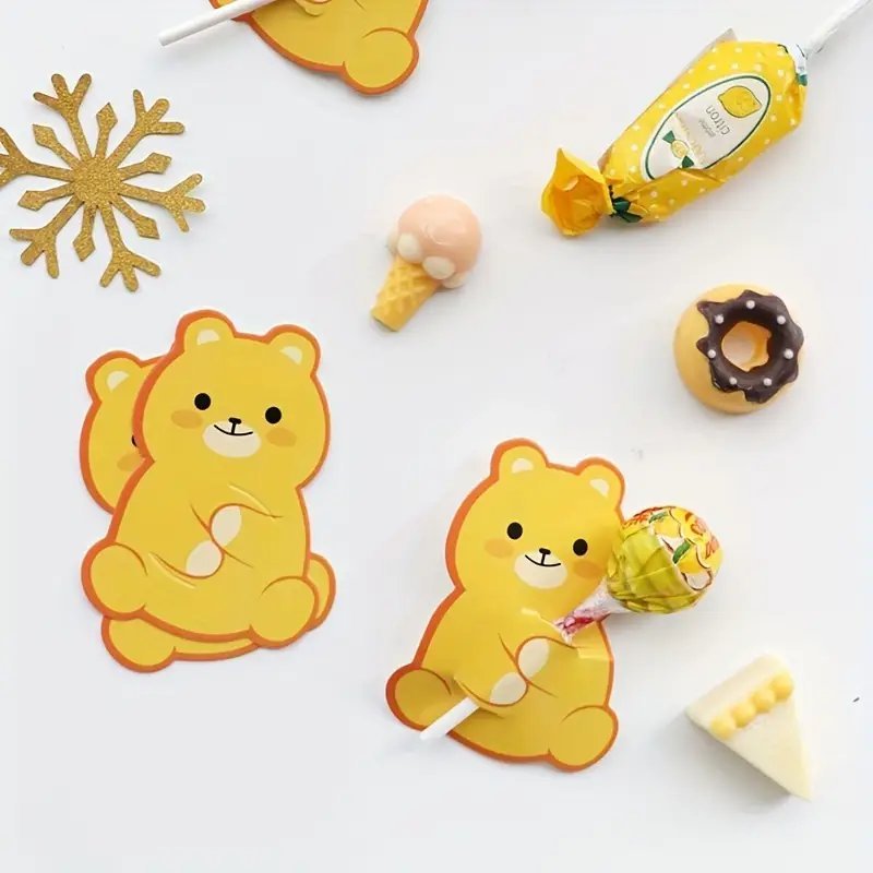 50 قطعة من بطاقات تزيين مصاصة الدب الأصفر الجذاب – مثالية للأعمال اليدوية والحفلات الاحتفالية