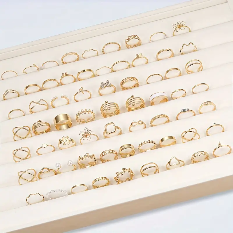 66 قطعة مجموعة خواتم أنيقة تصميم عصري على شكل زهرة/فراشة/قلب مزيج وتطابق للأزياء اليومية إكسسوارات الحفلات شيء أنيق