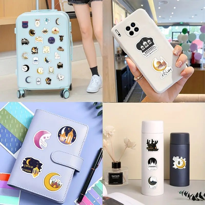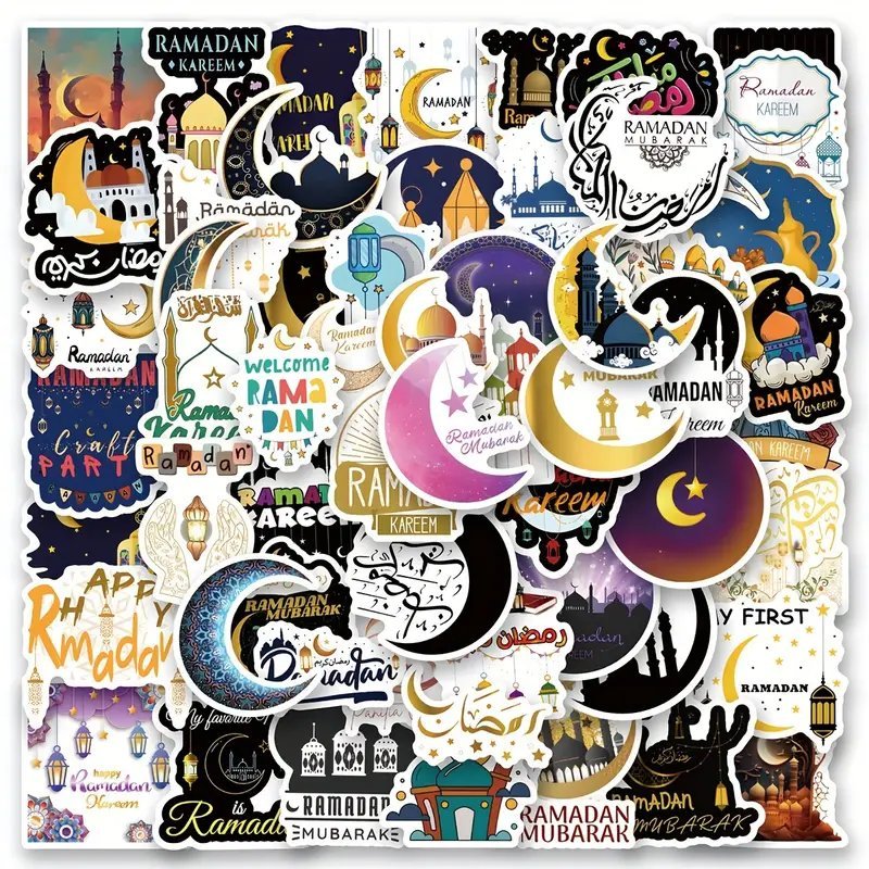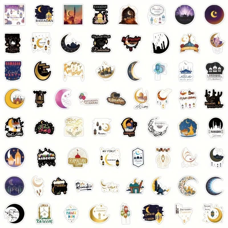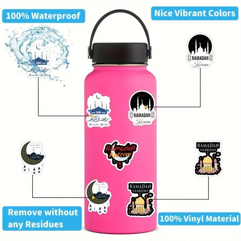 66 قطعة من ملصقات الفينيل لعيد الفطر ورمضان – مقاومة للماء، الحواسيب المحمولة، الصدامات، زجاجات الماء، الهواتف، السيارات،