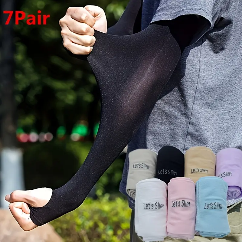 7 أزواج من أكمام الذراع المبردة للحماية من الأشعة فوق البنفسجية مع فتحات للأصابع – نسيج بوليستر 100%، أغطية ذراع قابلة للتنفس وممتصة للرطوبة للرياضات الخارجية وصيد الأسماك وركوب الدراجات – واقيات ذراع صيفية قابلة للغسل يدويًا